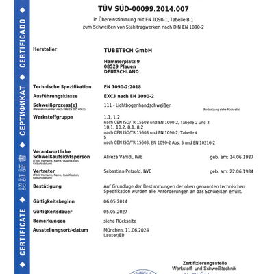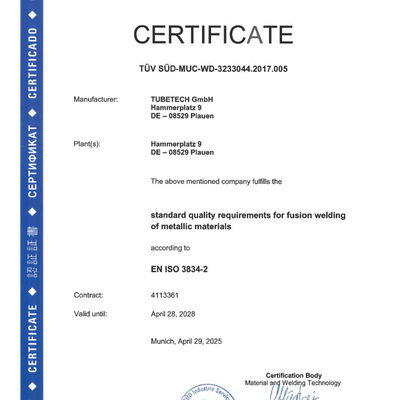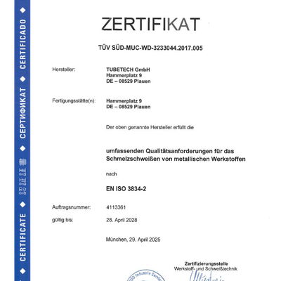 Zertifikat EN ISO 3834-2