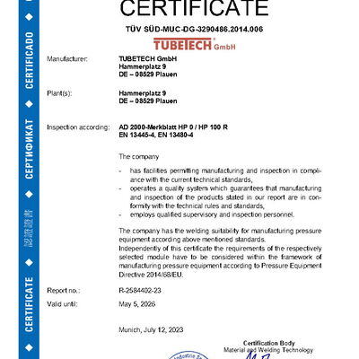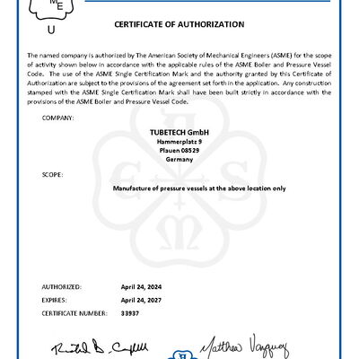 Zertifikat ASME