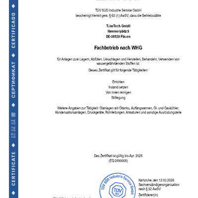 Zertifikat Fachbetrieb nach WHG